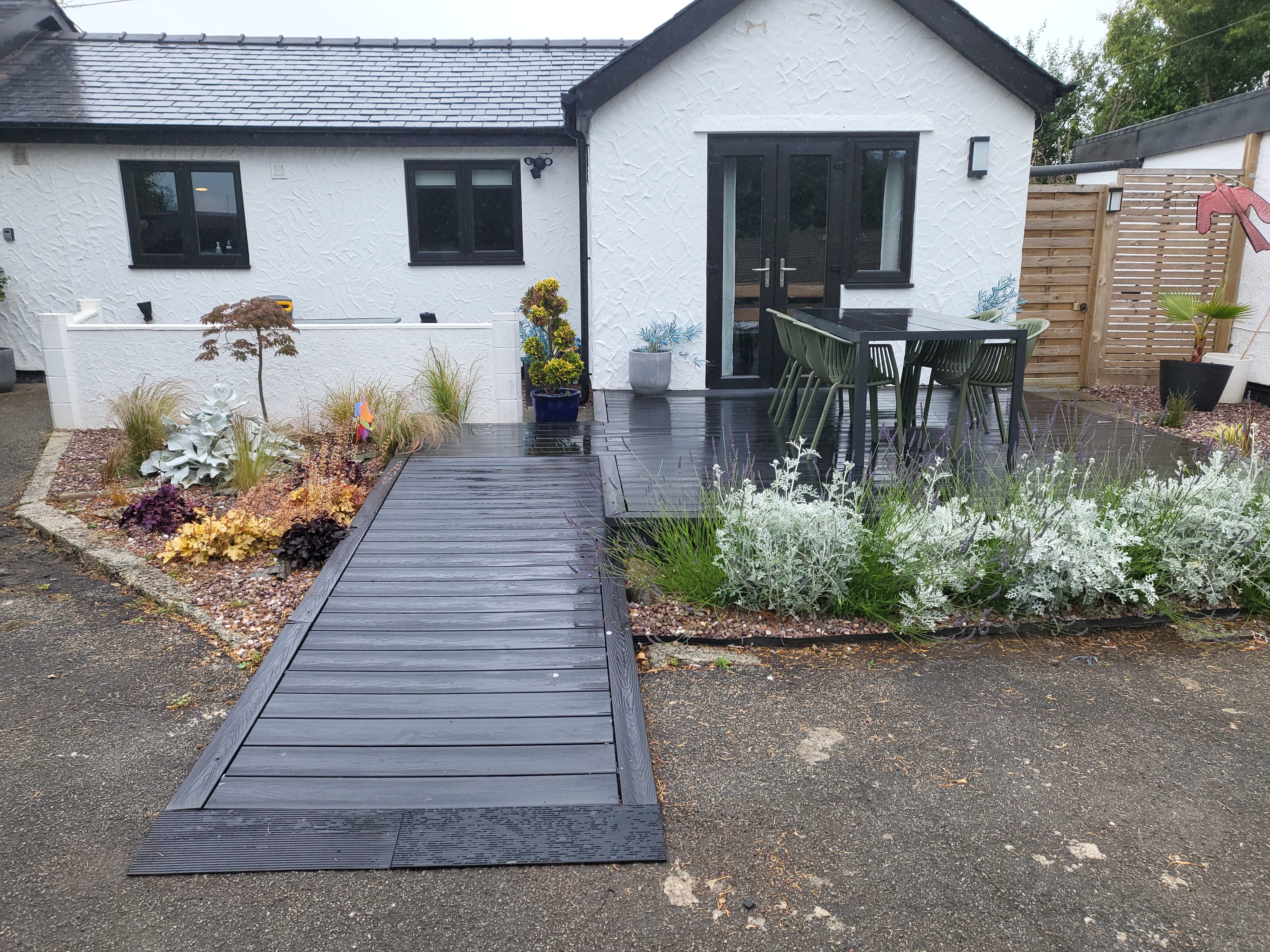 The bungalow is on the A5 which can be noisy but is important from an accessibility point of view. We found it difficult to navigate the winding country roads of Anglesey due to our family member becoming extremely travel sick so we chose a central location. This also allowed to find a property with enough space both inside and out. To negate the noise of the road we have installed Acoustic glass in the windows and also placed the main outdoor seating area well away,set back from the road.